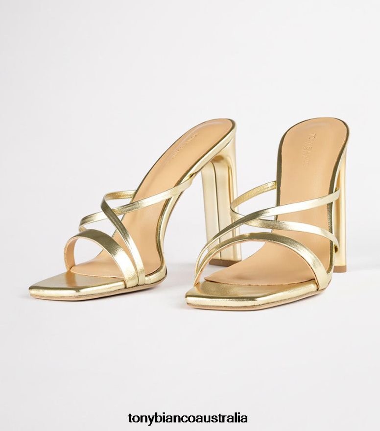 Add some metallic shine to your next look with our Fior mules in gold nappa. An elegant design showcasing slender crossover straps with a chic squared toe-shape, set atop an ultra high 11cm heel height. Pair back with a breezy dress and matching accessories for a statement look