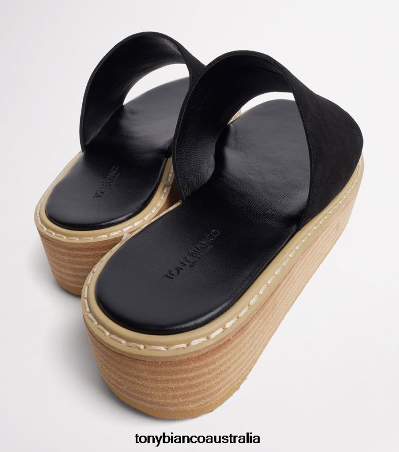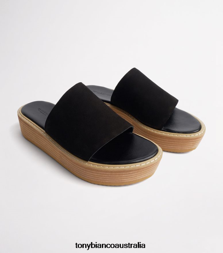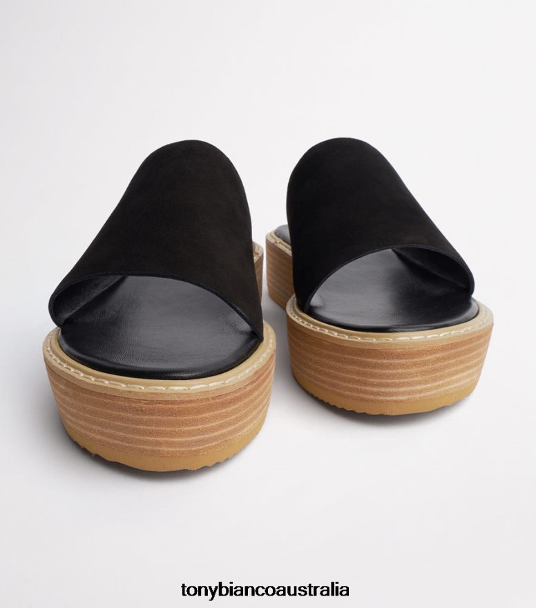 Slide into lasting comfort and style with the Elke slides. Designed with a black nubuck upper, a wide rounded open toe front with a contrasting raw wooden platform sole. Pair back with a dress or jeans for a slip-on-and-go essential.