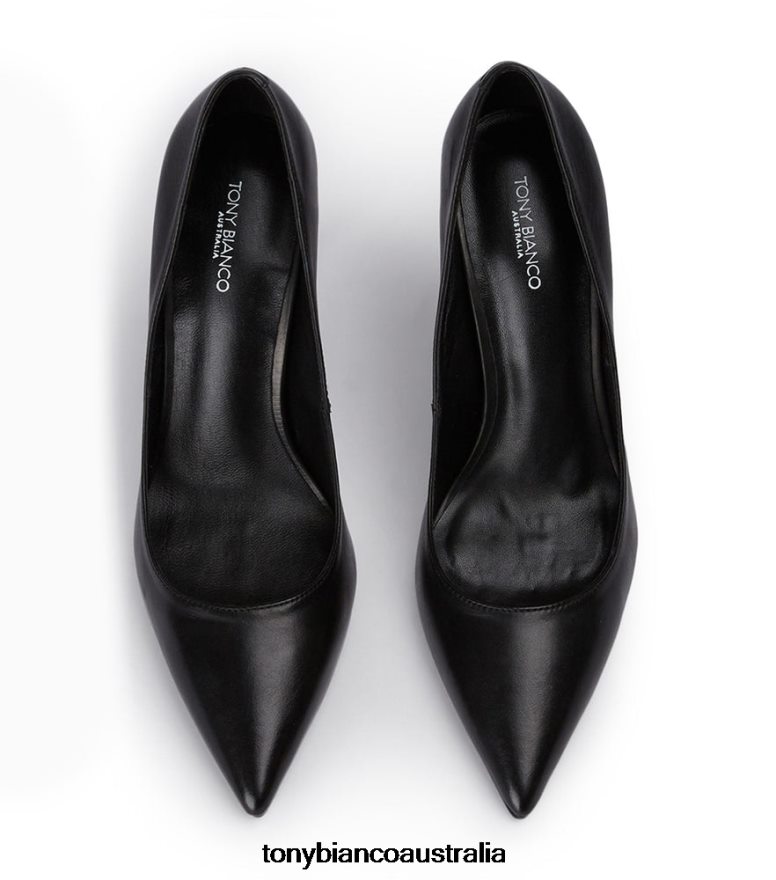 Perfect for every occasion are the Anja black leather heels. Capturing the elegance of a classic pump, with a scooped upper to create a flattering silhouette and stiletto heel, she is a must have for your shoe-drobe collection.