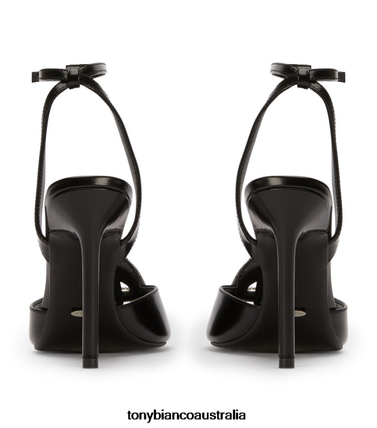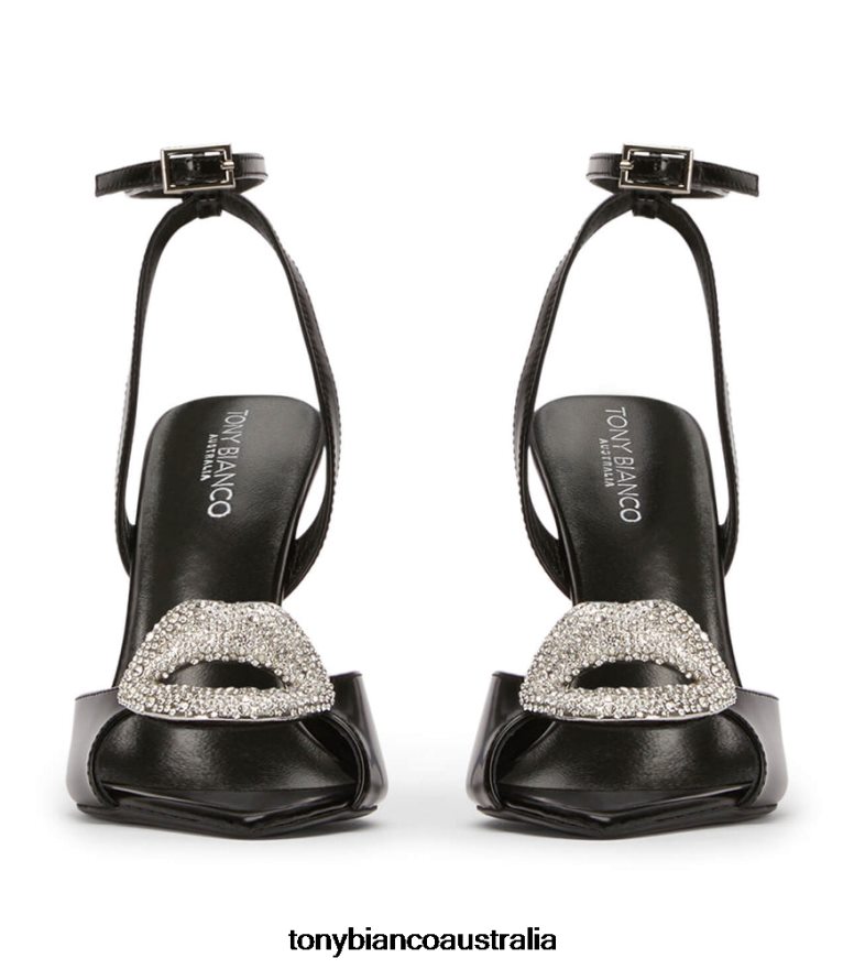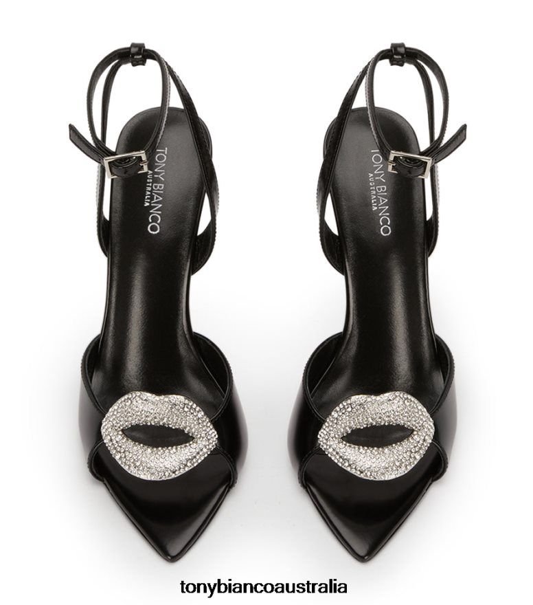 Level up the glam with Moshi, a sleek stiletto heel destined to turn heads. Featuring a pair of decorative diamante lips, a pointed toe, slender buckle ankle strap and finished in a shiny black leather, this style is hard to miss.