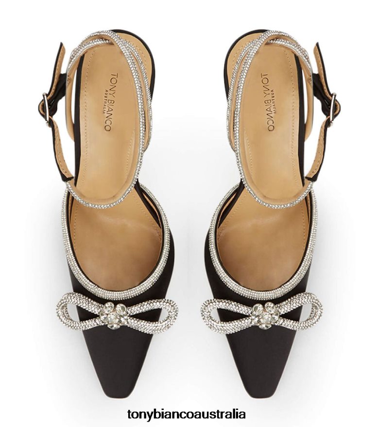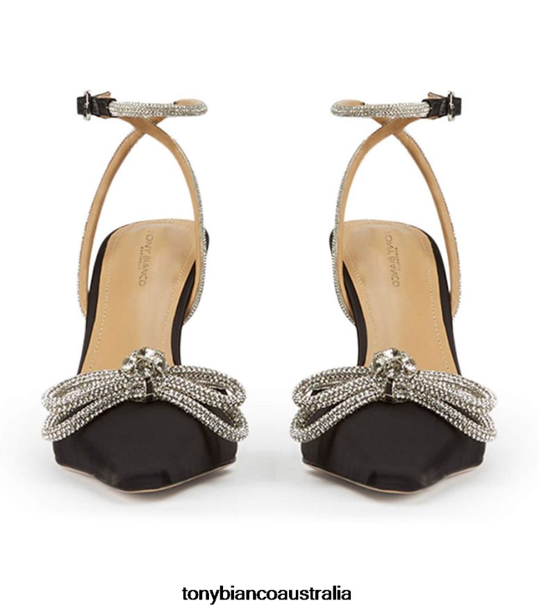 Let bling be a forever thing with our newest stiletto star Eros. Donning a glamorous black satin finish with luxurious leather lining, this pointed-toe heel paired with an embellished sling-back strap, evokes timeless elegance.