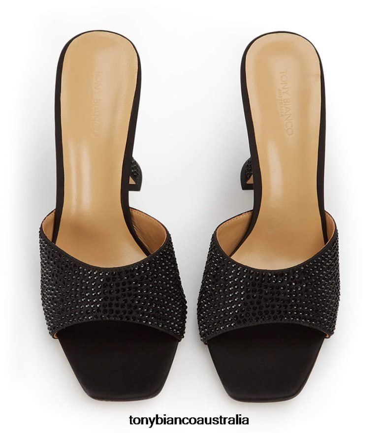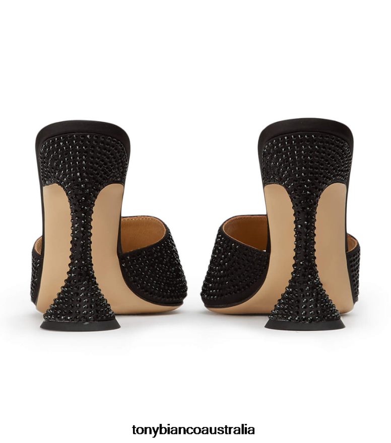 Slip on the Serri black mules and make a statement this season. Showcasing a lux hourglass stiletto heel, cushioned sole and embellishments from head-to-toe, these striking bling heels are ready to steal the spotlight.