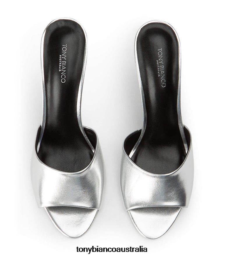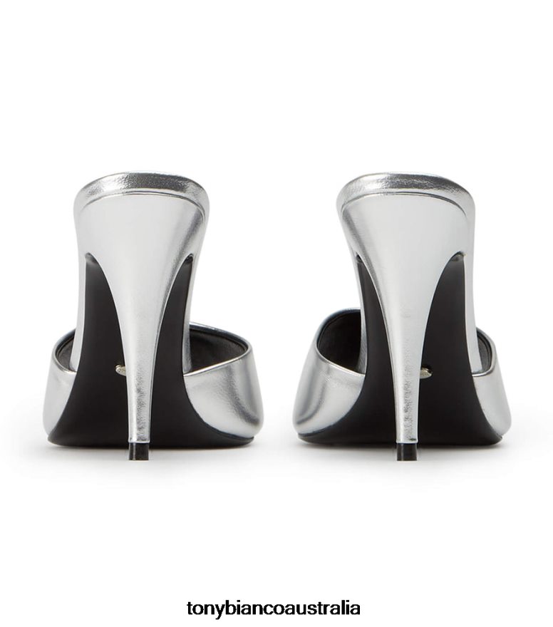Make room for mules this season with our Retro stiletto heels. Showcasing a curved leather upper, rounded open-toe, cushioned sole and chic silver metallic leather finish, this seamless design showcases effortless style.