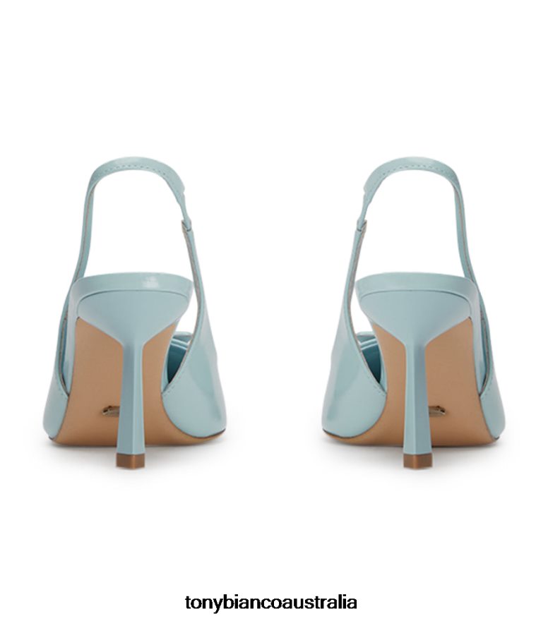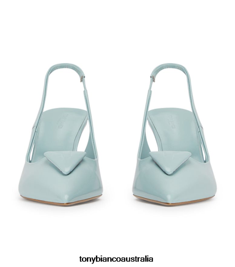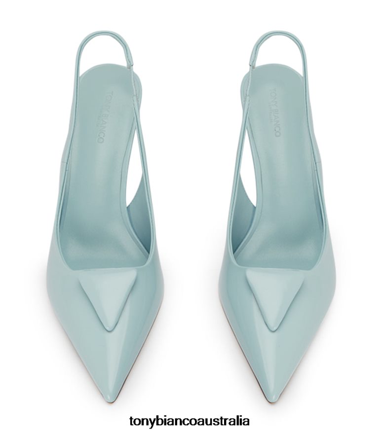 Introducing our answer to the perfect pointed-toe sling-back heel, Bertie. Encapsulating chic sophistication, this pump features an angular heel, sleek pared back design and triangular plaque detailing. Finished in sky hi shine leather, offering a soft and subtle hint of blue to your look this season.