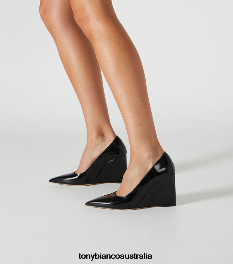 The pump with that little bit more, Dolly features an elongated pointed toe and sleek wedge heel. Exuding chicness in black hi shine leather, she's destined to have you feeling your main-character moment.